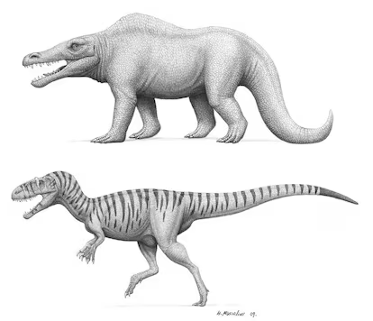 Fósil de Megalosaurus: El primer dinosaurio descubierto fue el megalosaurus en el año 1676, fue encontrado por William Buckland en Inglaterra, William encontró tan solo el fémur del animal por lo que se pensaba que pertenecía a un humano gigante, fue hasta 1827 que el naturalista Gideon Mantell le dio el nombre de Megalosaurus.El Megalosaurus bucklandii es la única especie conocida del genero extinto Megalosaurus (“lagarto grande” en latín), vivió a mediados del periodo jurásico hace aproximadamente 166 millones de años, en el Bathoniense, en lo que hoy es conocido como Europa. Era un depredador bípedo de unos 9 metros de largo y alrededor de una tonelada de peso con una estructura balanceada para la carrera, sus patas traseras tenían tres dedos adelante y uno invertido, sus patas delanteras eran pequeñas, pero no habían alcanzado el tamaño minúsculo de otros terópodos como el “Tyrannosaurus”.